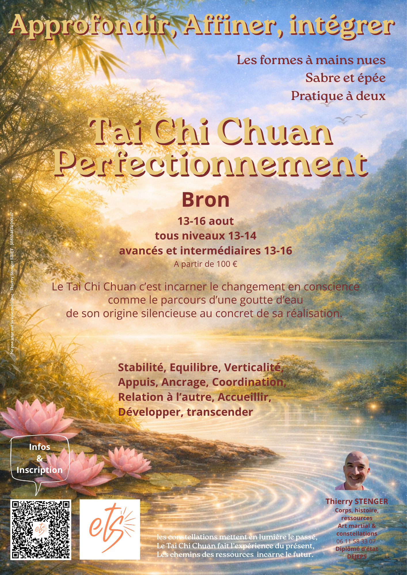 J’enseigne et partage ce voyage intérieur nourrit des volutes du TAI CHI CHUAN depuis 1998.